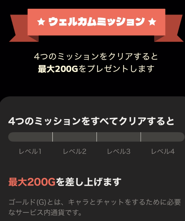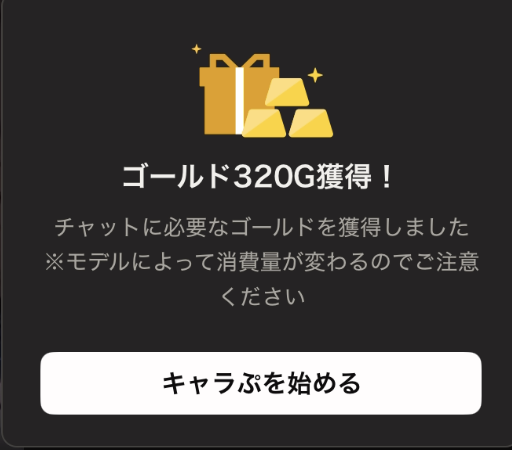 今なら会員登録するだけで、チャット最大100回分のゴールド(=320G)がもらえます。