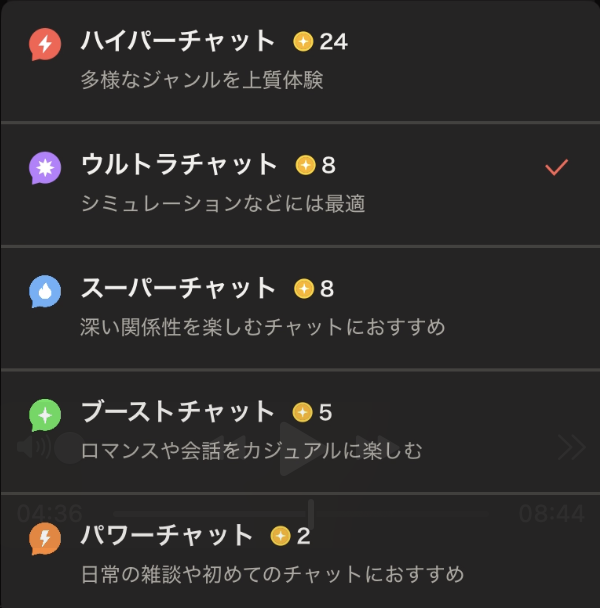 「キャラぷ」でどんな会話をするかによって、最適なチャットシステムが異なりますが、ゴールドが高いほど、高品質なAIを使えるようになっています。