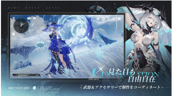 「デュエットナイトアビス」ではプレイヤーのキャラを武器&アクセサリーで個性を自由にコーディネート可能です。
