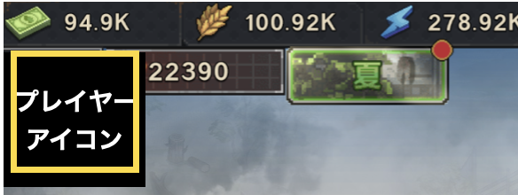 ①画面左上「プレイヤーアイコン」を選択