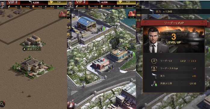 拠点(別荘・シティ)を建設強化して資源と戦力アップ