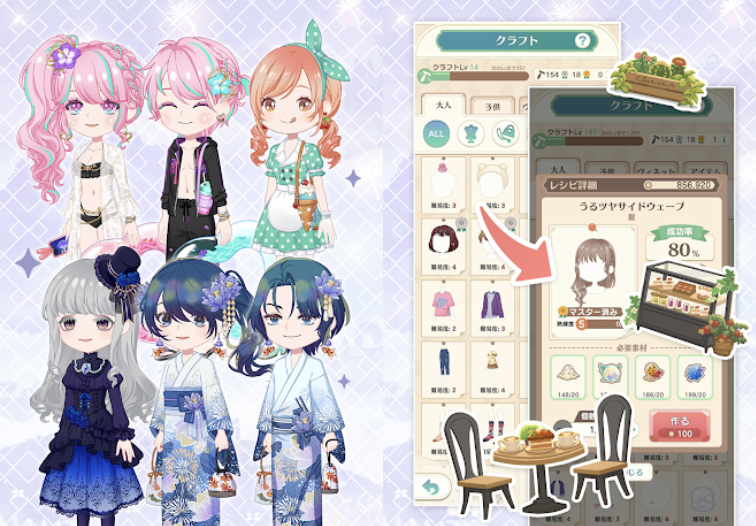また、ヴィネットで育てた素材を収穫して、無料でかわいい着せ替えアバターアイテムが作成できるので無課金プレイも可能です。