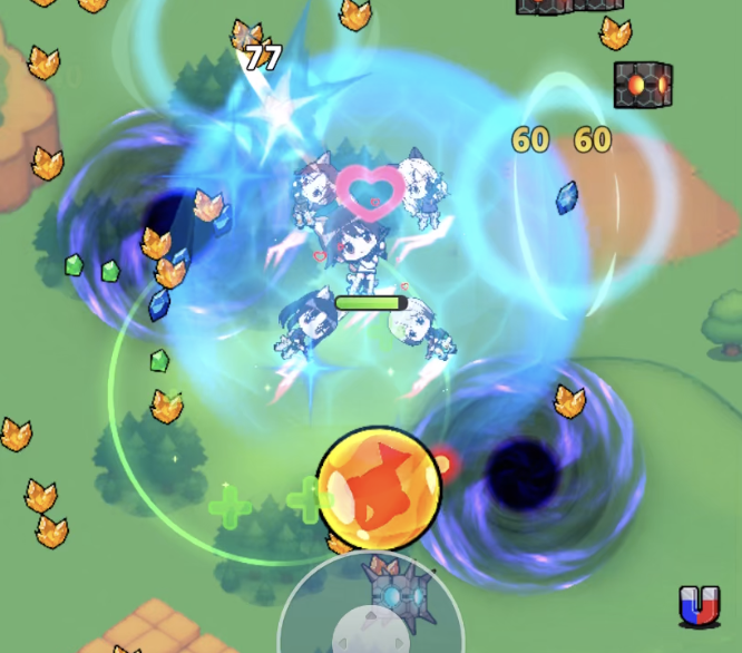 攻撃は自動で行われるので、プレイヤーはロボットの方向を変えることで攻撃範囲も調整できます。