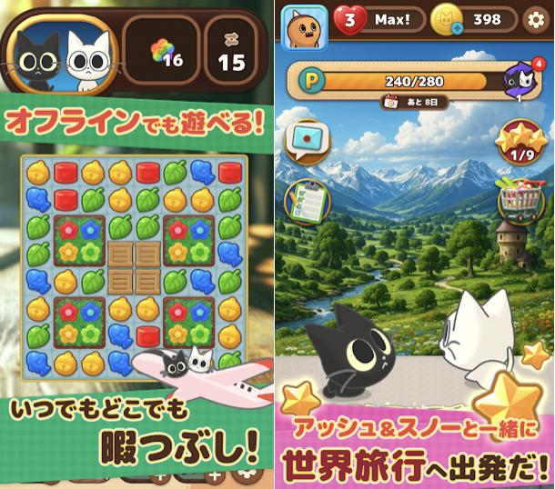 癒し系のかわいいネコキャラ に癒されながらパズルを楽しもう