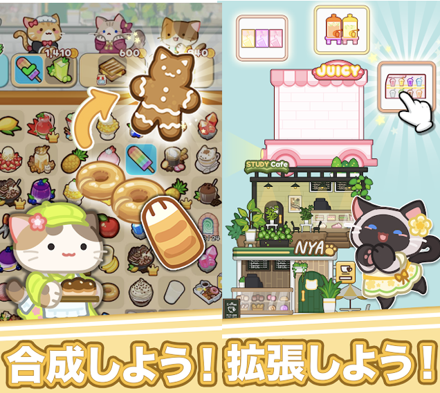 かわいい猫 × マージパズルゲーム × カフェ経営ゲーム =マージニャンカフェ