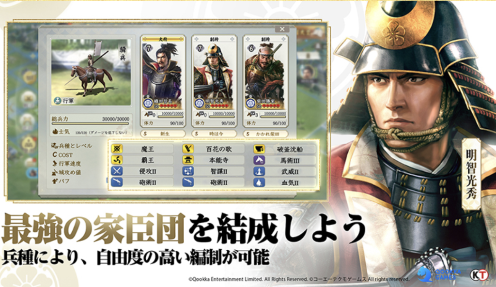 また、100人以上の武将を収集、育成可能であり兵種・家門・勢力――多様な要素で自在に編成できます。
