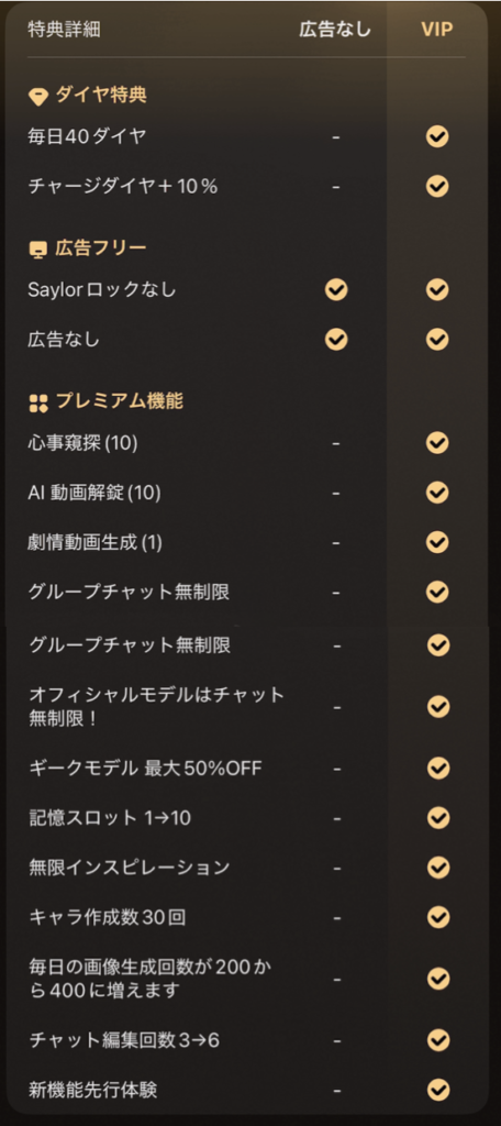 無課金プランでもAIチャットができるので、十分楽しめますが、使えるキャラ、会話の回数、ストーリー体験の制限などがあります。