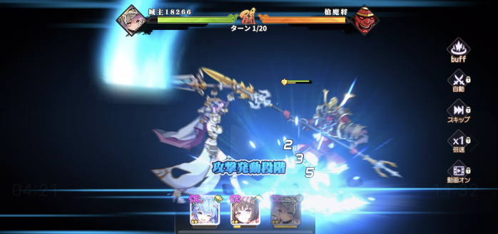 ただ適当にタップするだけでなく、敵の特性を見ながら、デフ、バフのスキルを選択して倒していく攻撃の順番が重要になる戦略バトルの側面があります