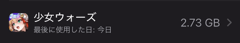 少女ウォーズをアプリストアからダウンロードすると2.73GBになります。(2025年12月21日時点)
