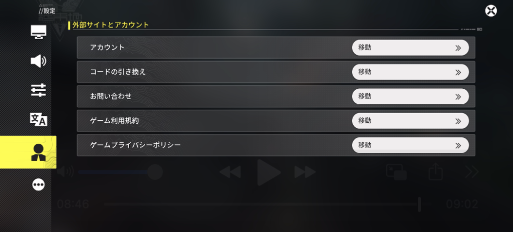 ②「設定」→「外部サイトとアカウント」を選択