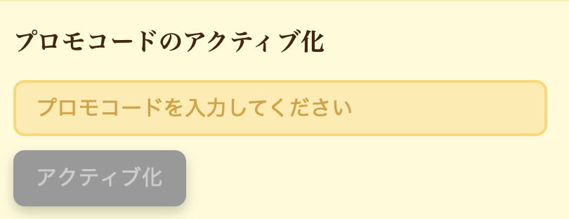 ②「プロモコードをアクティブ化」の部分にコード入力して「アクティブ化」をクリック