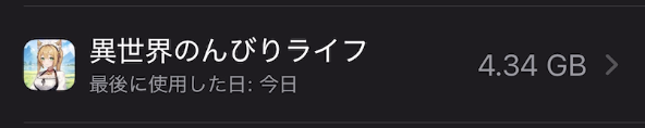 その結果、4.34GBになりました。結論、異世界のんびりライフは、今後もアップデートで増えていくので空き容量は5GB以上あると安心です。