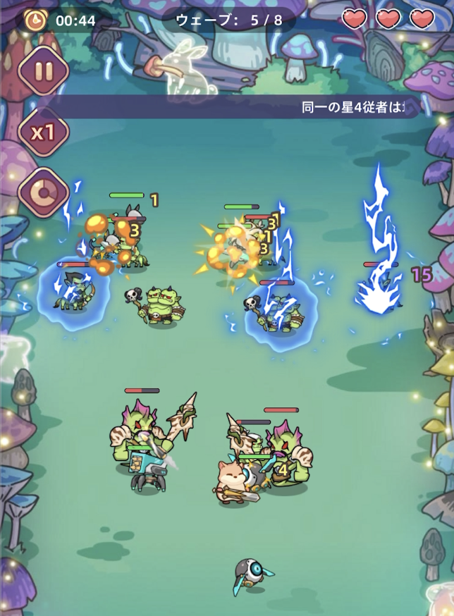 キャラを召喚し、合成することで自動で戦ってくれます。