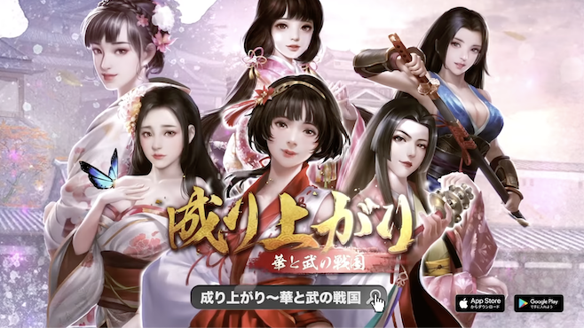 縦画面、片手操作でプレイできるので通勤の隙間時間にサクッと遊んでいる人も多い【成り上がり~華と武の戦国】はどんなゲームなのか紹介します。
