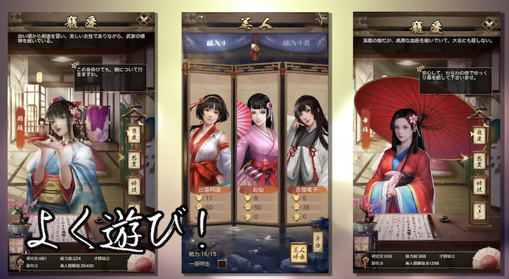 しかし、ただの戦国時代ゲームではないく、さまざまな美女たちと、恋に落ち子孫を後世に残していく恋愛ゲーム要素も楽しめるのが【成り上がり華と武の戦国】なのです。