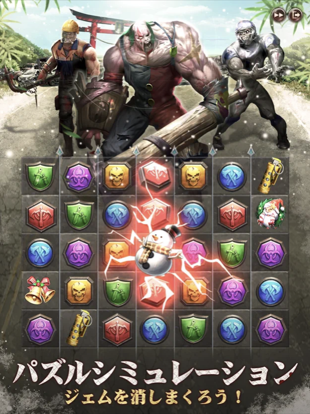 サバイバルゲームとマッチ3パズルが誘導したゾンビサバイバルゲーム