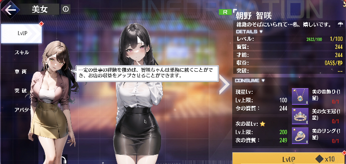 ・秘書がメインのゲームなので、ここに興味がないと続かないかも
